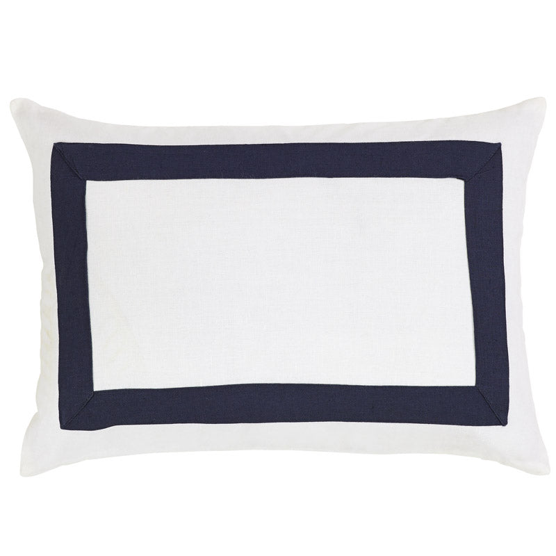 Sophisticated yet easygoing, this Amalfi Linen Border Pillow in white with navy border adds a tailored touch to any sofa, armchair, or bed. The linen-cotton blend delivers a soft hand feel with just the right amount of structure, while the bold border design creates a timeless accent.