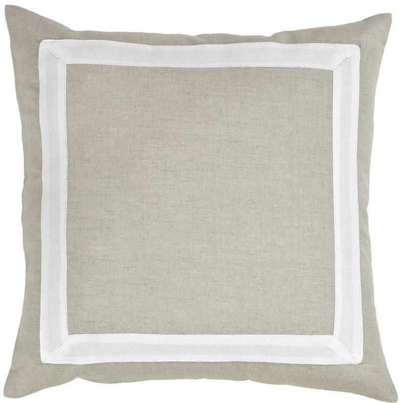 Relaxed and refined, this Amalfi Linen Border Pillow in natural with white border blends soft texture with crisp detail. The linen-cotton fabric offers a breathable, lived-in feel, while the contrasting white frame gives it a clean, structured finish. A feather-and-down insert adds cozy comfort, making it a versatile piece that elevates any décor.
