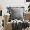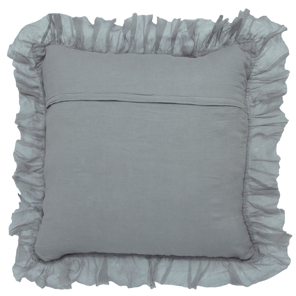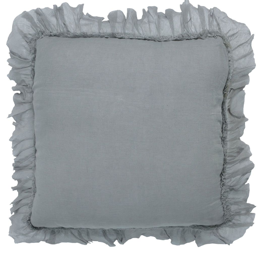Bring soft texture and timeless style into your home with this ruffled linen pillow. Crafted from 100% linen in a versatile grey hue, it has a light, airy quality that feels both relaxed and refined. The ruffled edges add a delicate decorative touch, making it the perfect accent for a sofa, armchair, or layered bedding.