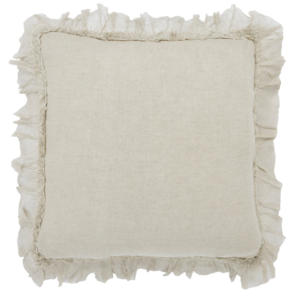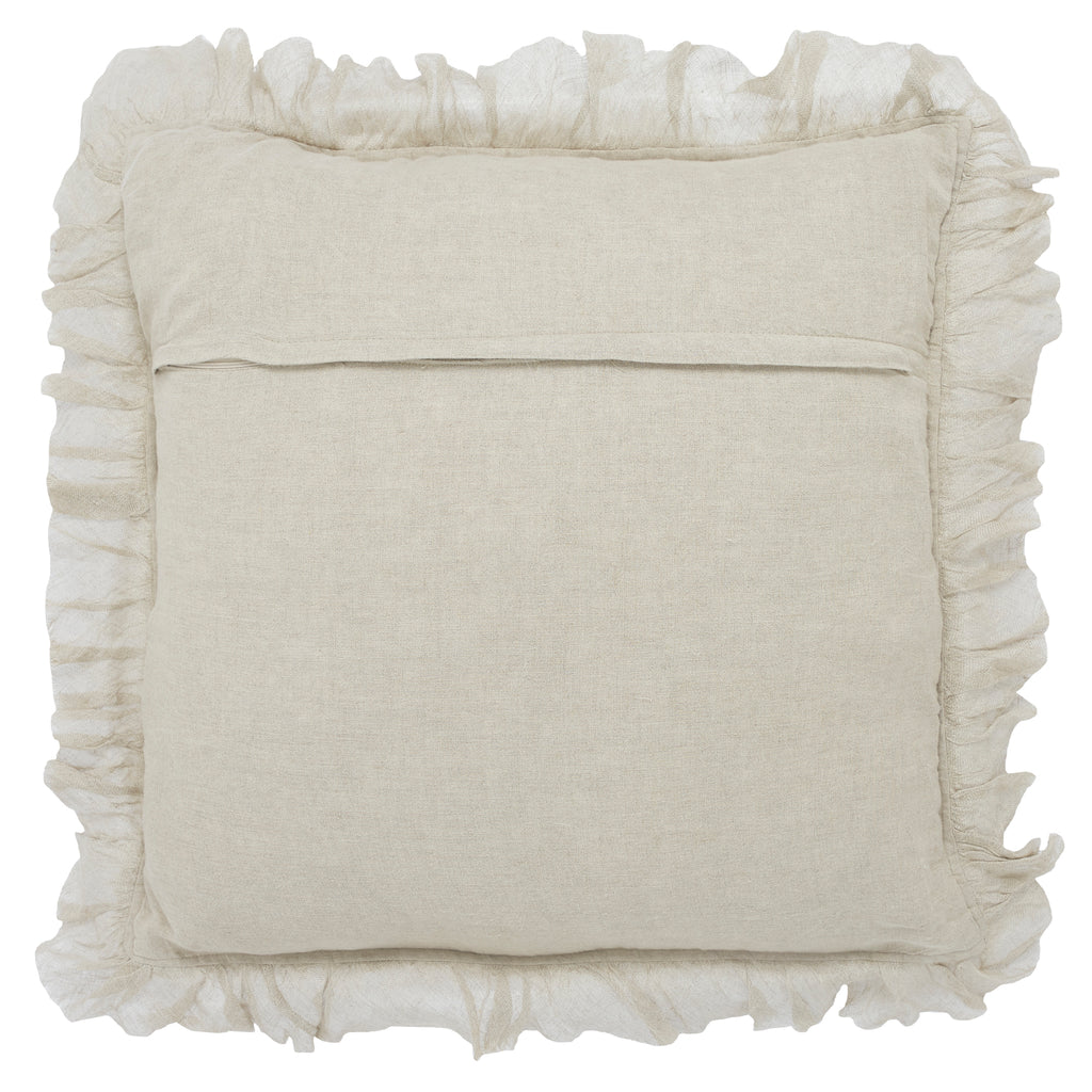 Soft, airy, and timeless — this ruffled linen pillow adds a gentle touch of elegance to any room. Made from 100% linen in a versatile natural shade, it brings a light and refined texture that feels both casual and sophisticated. The ruffled border gives it a soft, decorative edge, making it a charming accent for a sofa, bed, or armchair.