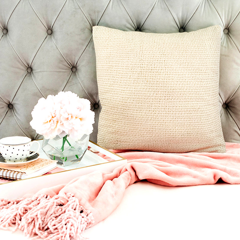 Madera Cross Weave Pillow, 22"x 22", Ivory
