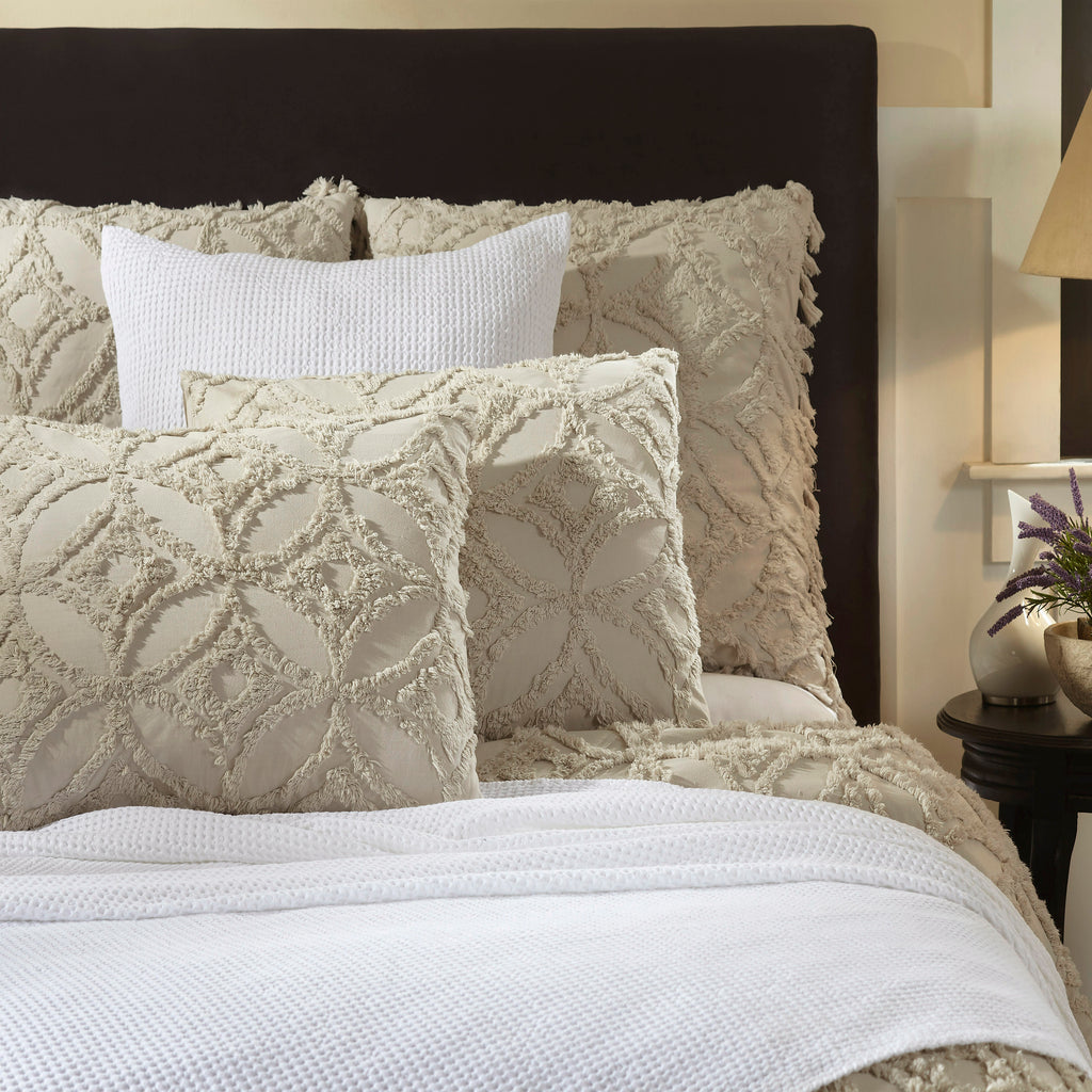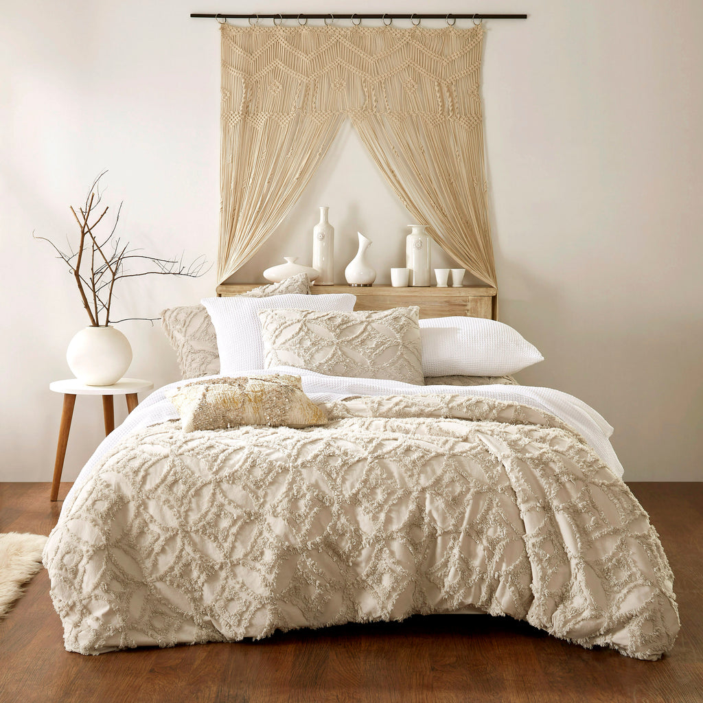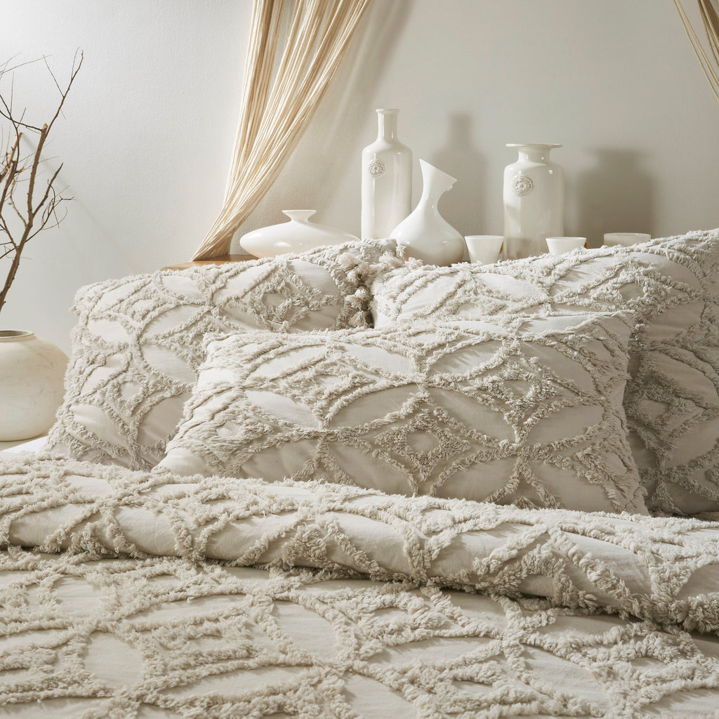 The Madison Duvet Cover and Shams offer a soft, inviting texture that transforms the bed into a cozy retreat. Crafted from 100% cotton, this set features unique cotton tufted duvet cover and shams in a natural color that works with many different decor styles. The relaxed texture brings a sense of lived-in ease, while refined details—like the knife-edge finish on the shams and hidden button closures—preserve a clean silhouette. Designed for casual elegance, the Madison collection lends a tactile charm to both modern and bohemian interiors. OEKO-TEX® certified and machine washable, it’s made for everyday comfort without compromising on character.