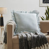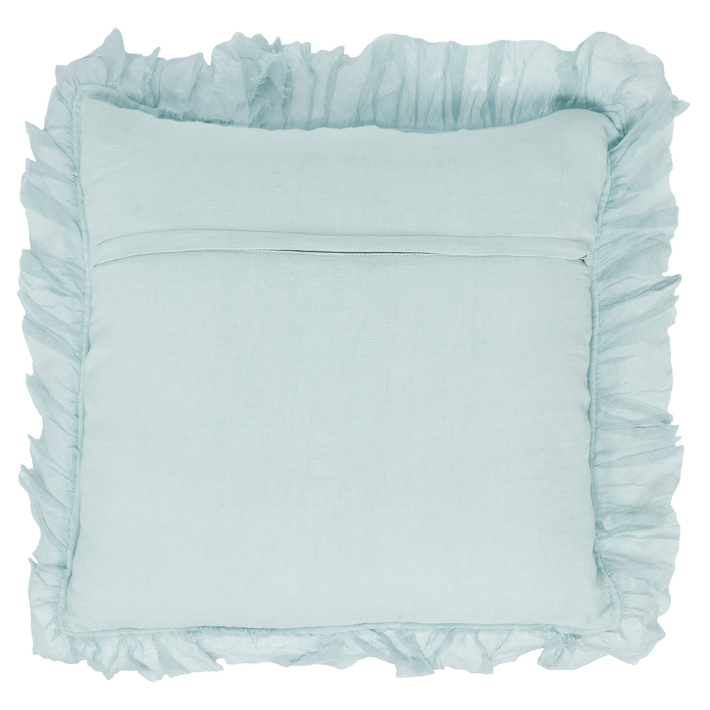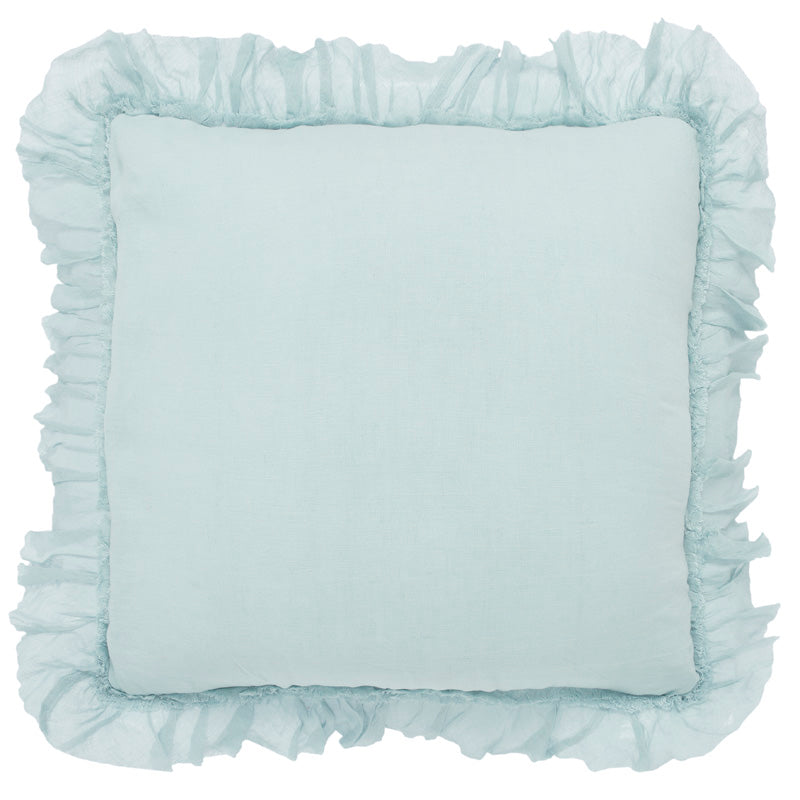 Light, airy, and effortlessly romantic — this ruffled linen pillow brings a touch of charm to any space. Crafted from 100% linen in a soft ice blue hue, its sheer texture and delicate edges give it a graceful, lived-in elegance. The ruffled border adds movement and style, making it a beautiful accent whether layered on a bed, tucked into a reading nook, or styled on a sofa.