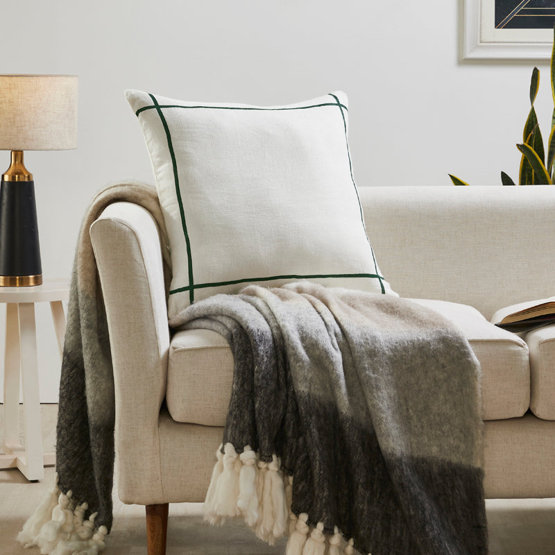 Bring a modern yet timeless accent to your home with this linen pillow, framed by a minimalist striped border that adds just the right amount of color and definition. Woven from 100% linen on both sides, it has a crisp, natural texture that feels fresh and effortless. Inside, a feather-and-down insert provides the perfect balance of softness and support, making it as comfortable as it is stylish.